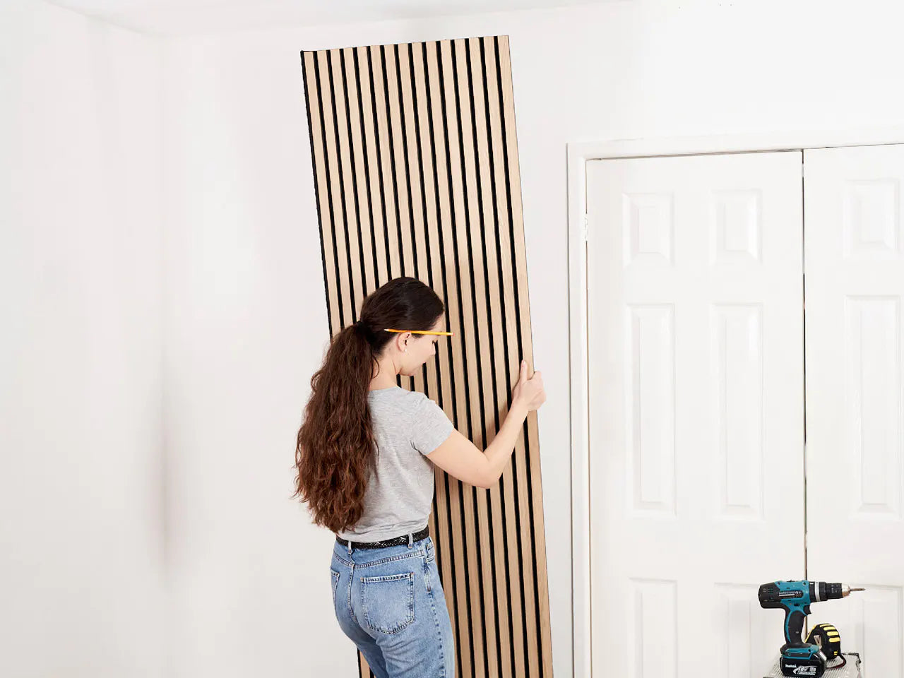 Schrauben Sie die Paneele einfach direkt durch die akustische Filzrückseite an die Wand, oder wenn Sie eine Schallabsorption der Klasse A erzielen möchten, können Sie die Paneele mit Leisten befestigen.