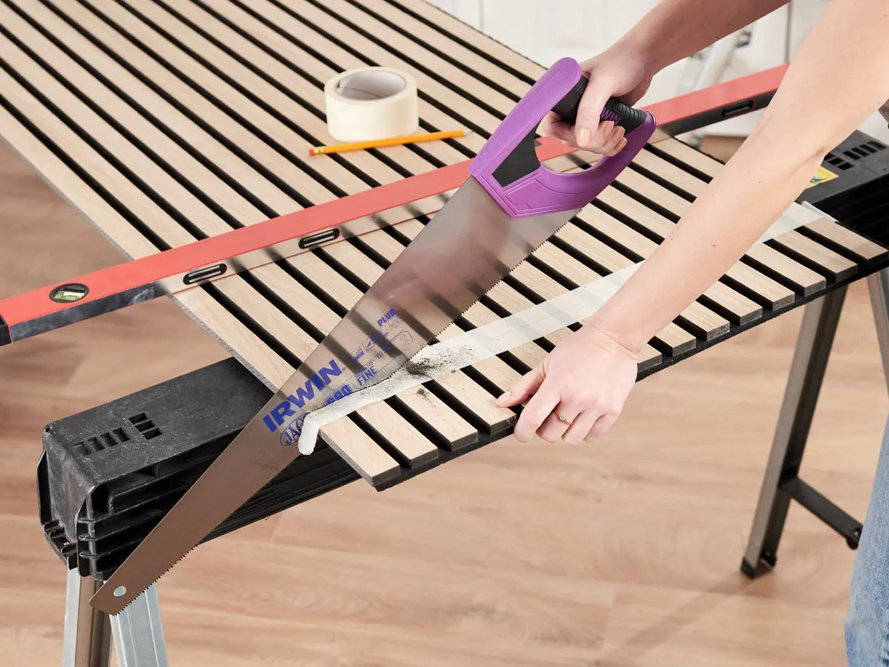 Die Platten lassen sich ganz einfach zuschneiden! Zum Zuschneiden der Platten können Sie eine scharfe Säge mit feiner Zahnung verwenden. Wir empfehlen, die Schnittkanten der Platte abzuschleifen, um eine glatte Kantenoberfläche zu erhalten.